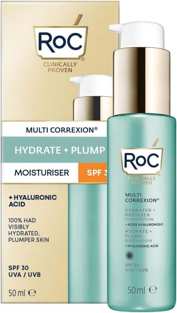 RoC Multi Correxion Hydrate + Plump Moisturiser SPF 30 is an excellent all-in-one daily face cream for those seeking hydration, plumping benefits, and sun protection in a single product. It’s ideal for busy routines, offering smoother, more radiant-looking skin while helping to protect against premature ageing.